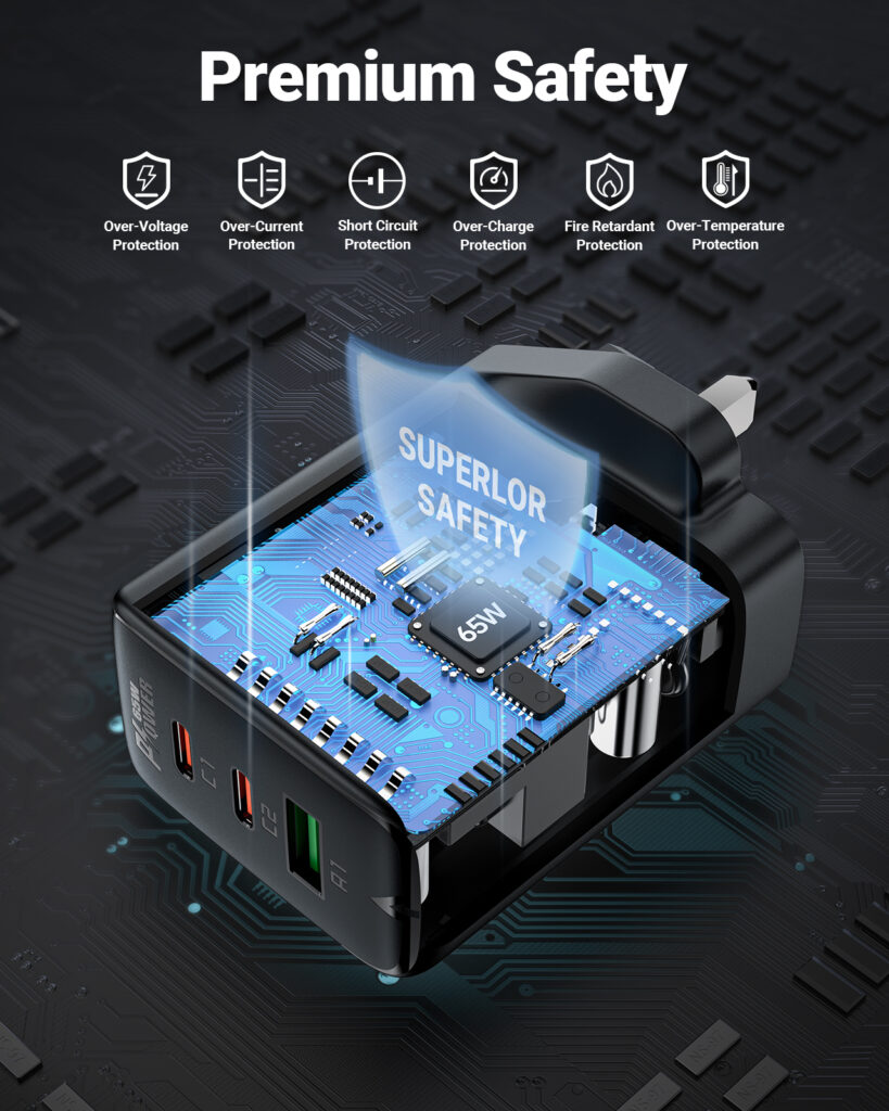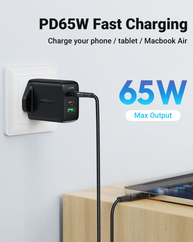 - GaN 65W wall charger.