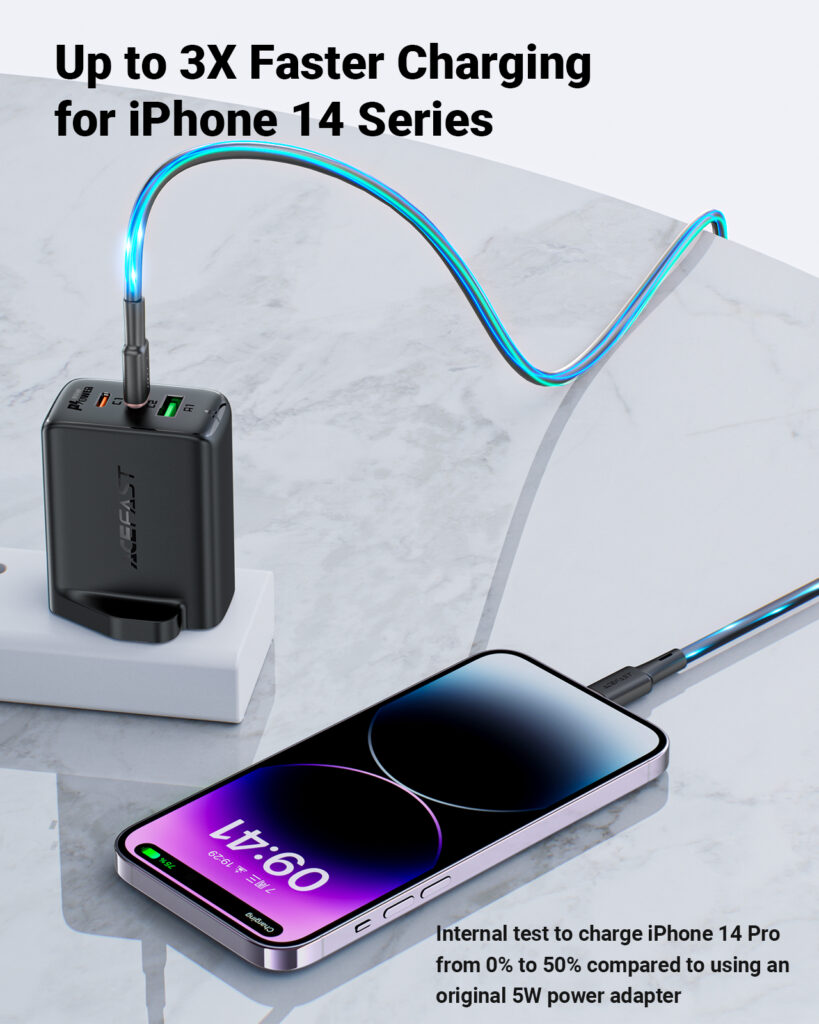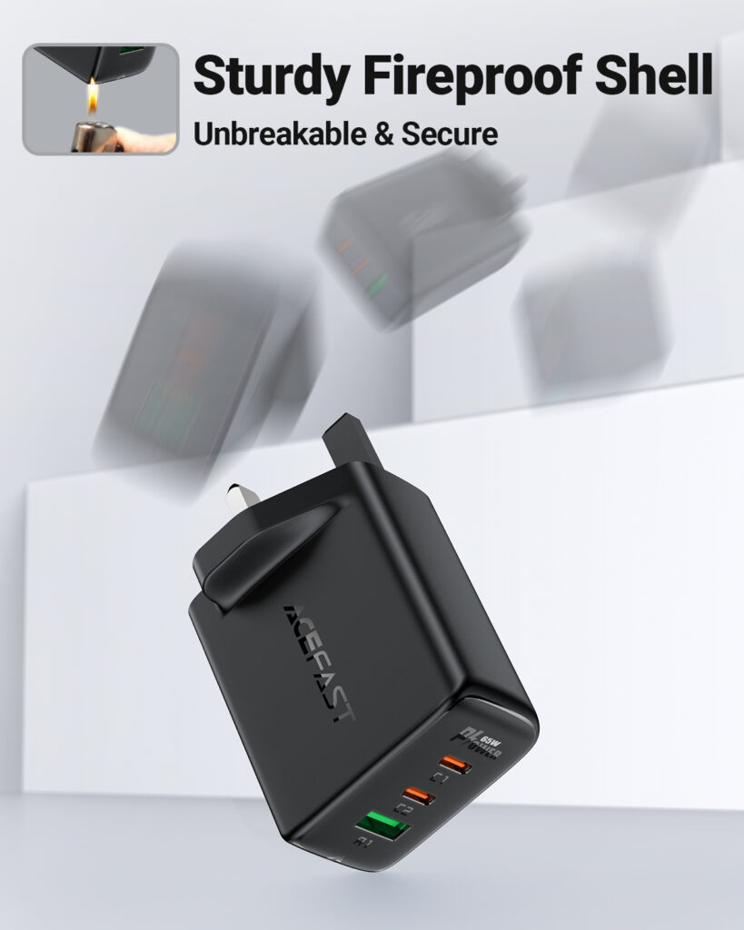 ACEFAST PD65W GaN (2×USB-C+USB-A) charger – Black