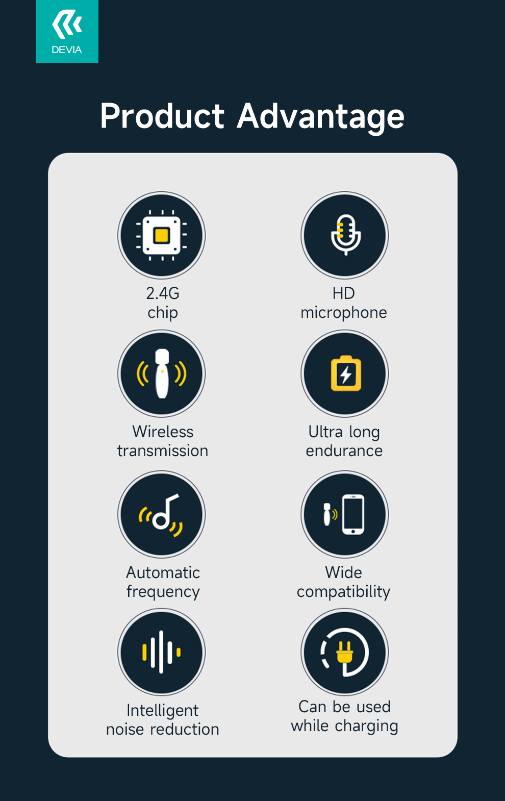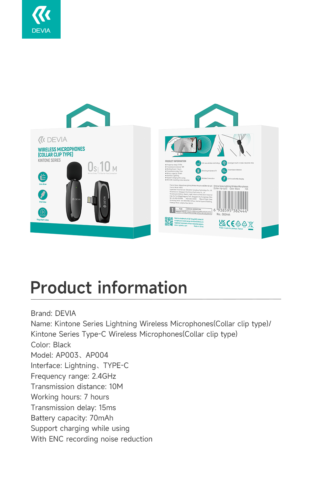 DEVIA Kintone Series Type-C Wireless Microphones(Collar clip type) AP004 – Black