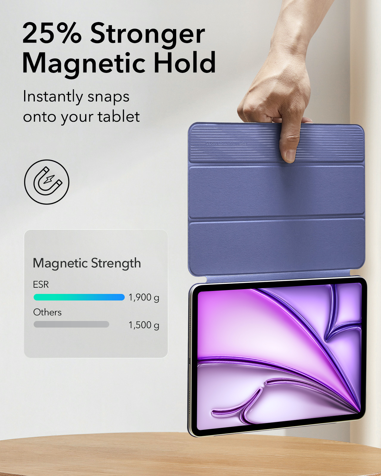 ESR Rebound Magnetic Case, Compatible with iPad Air 13 (2024), Pro 12.9 (6th/5th/4th Gen), Lavender – 1B1980403