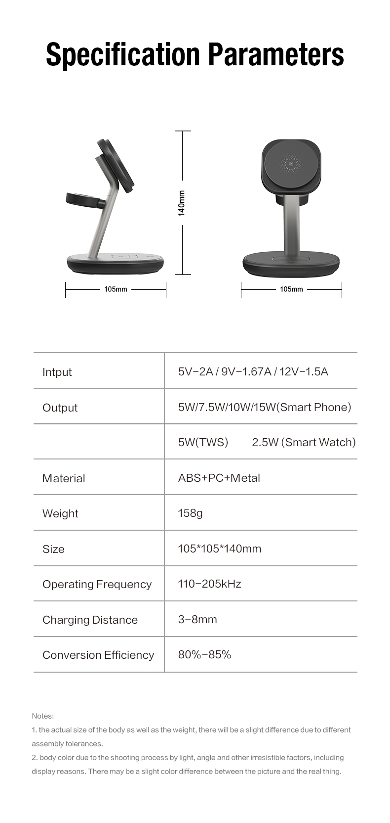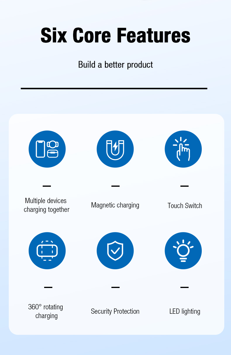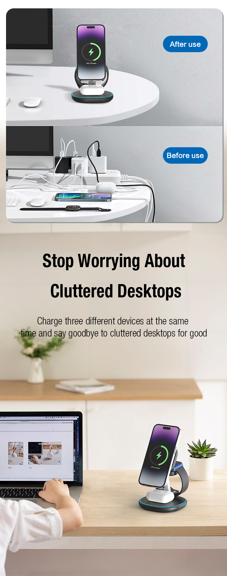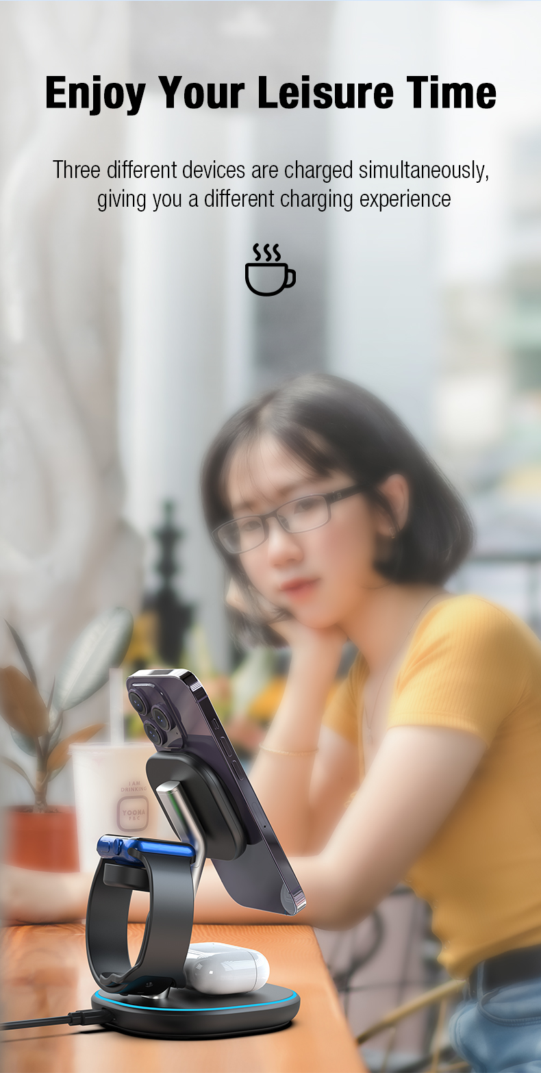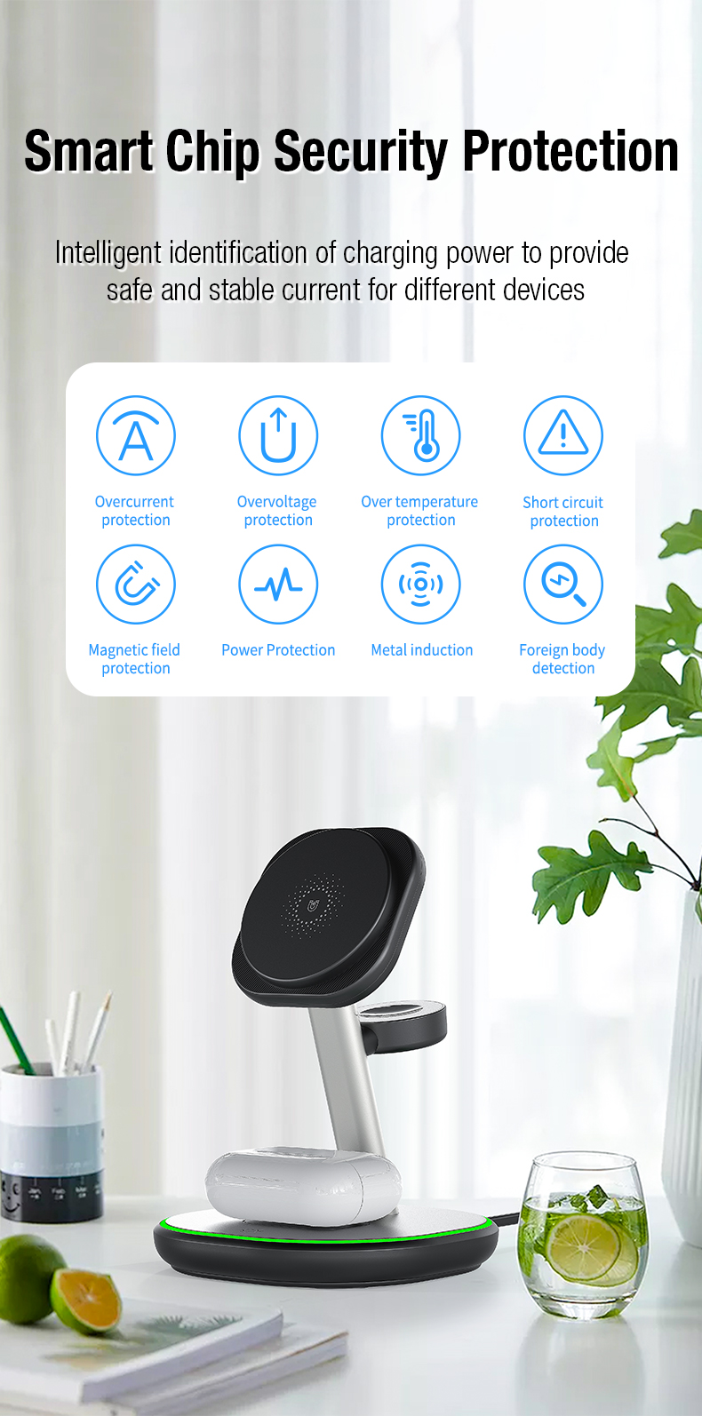 - Support charging of multiple devices, Apple wireless charging phones, headsets, watches