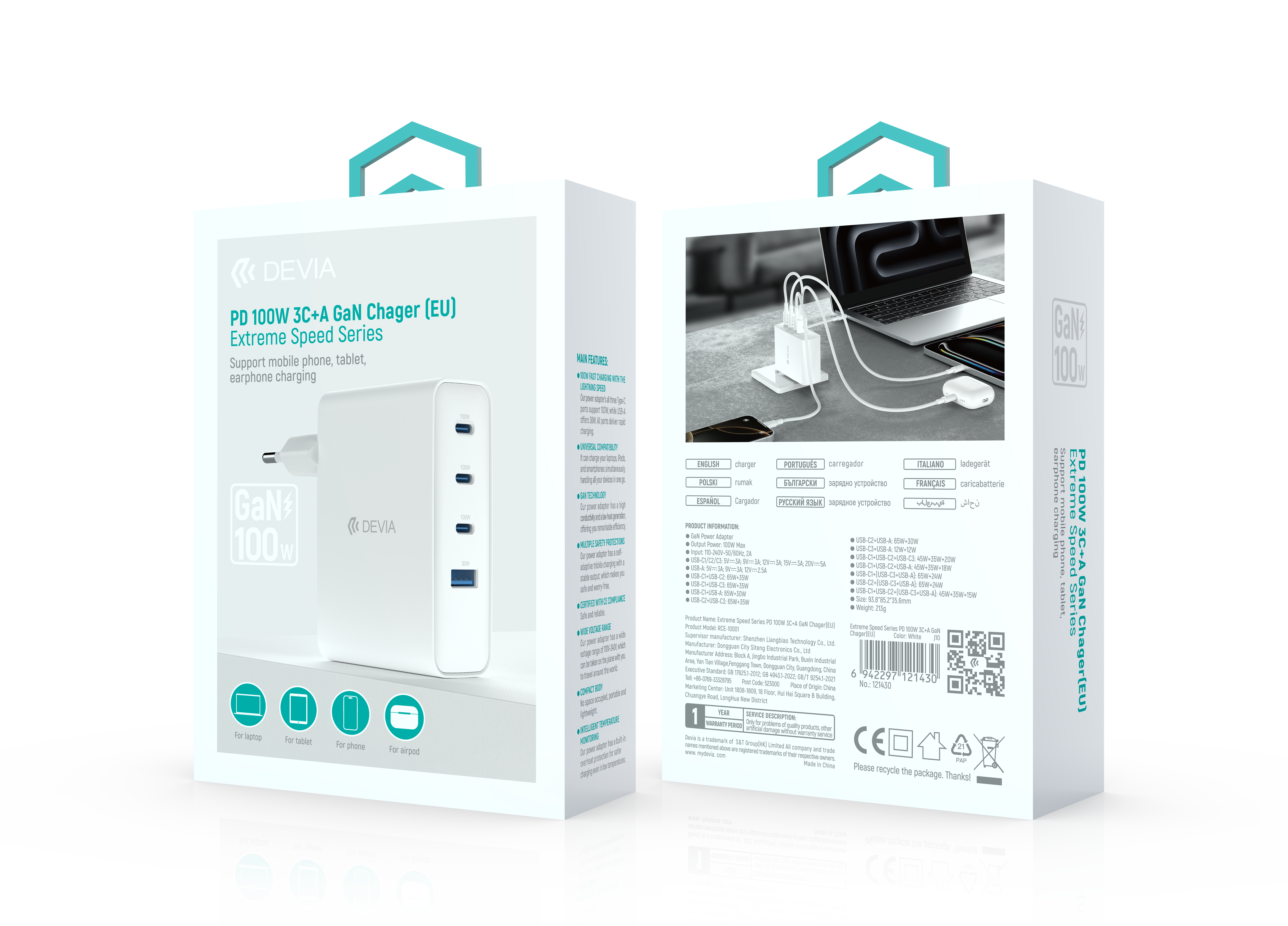 DEVIA Extreme Speed Series PD 100W 3C+A GaN Charger (EU)
