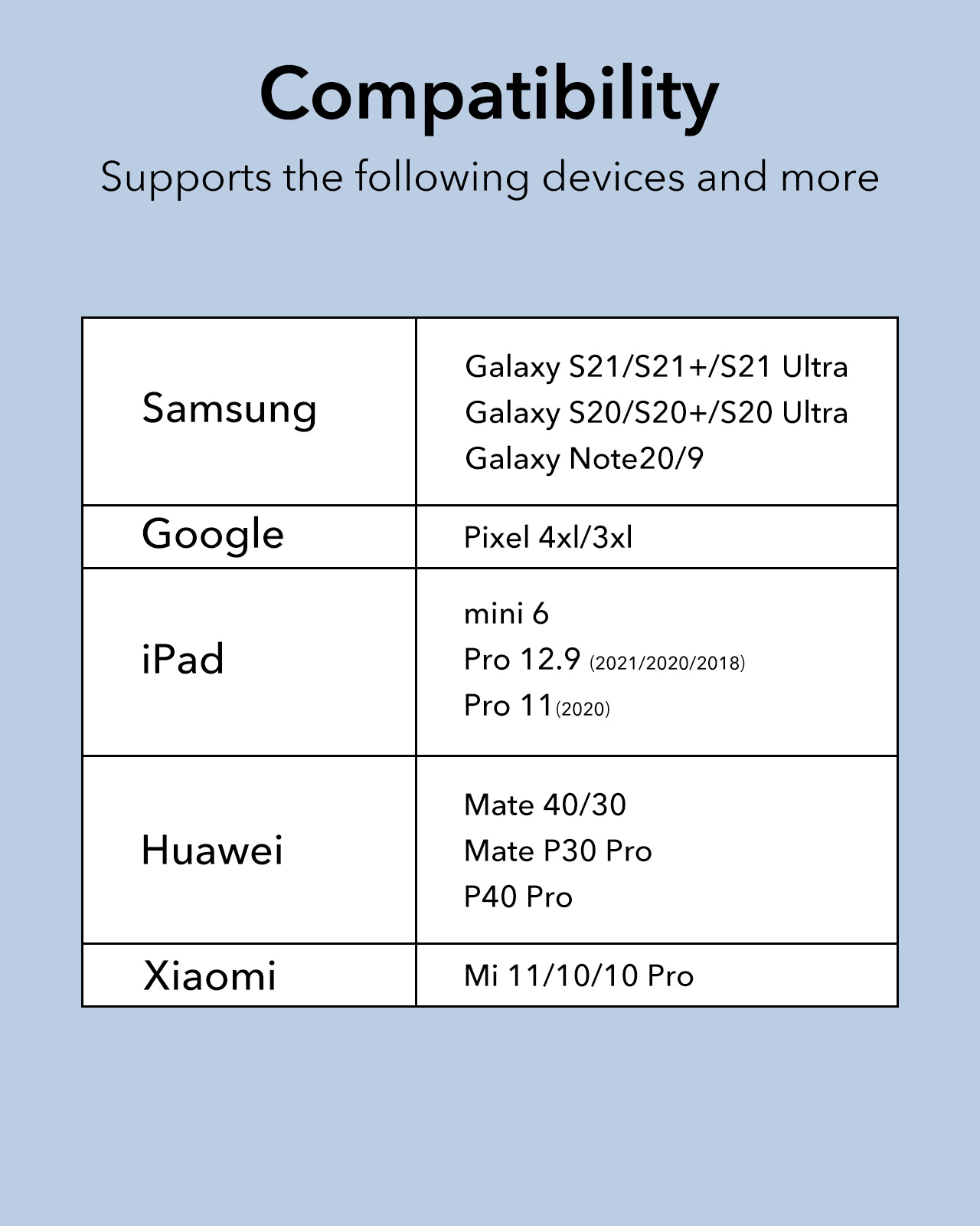 - Broad Compatibility: compatible with Samsung Galaxy S21/S21+/S21 Ultra/S20/S20+/S20 Ultra/Note20/9, Google Pixel 4xl/3xl, iPad mini 6 (2021)/Pro 12.9 (2021/2020/2018)/Pro 11 (2020), Huawei Mate 40/40 Pro/30/30 Pro and P40 Pro, Xiaomi Mi 11/10/10 Pro, and most other USB-C devices; see product description for a full list of compatible devices.