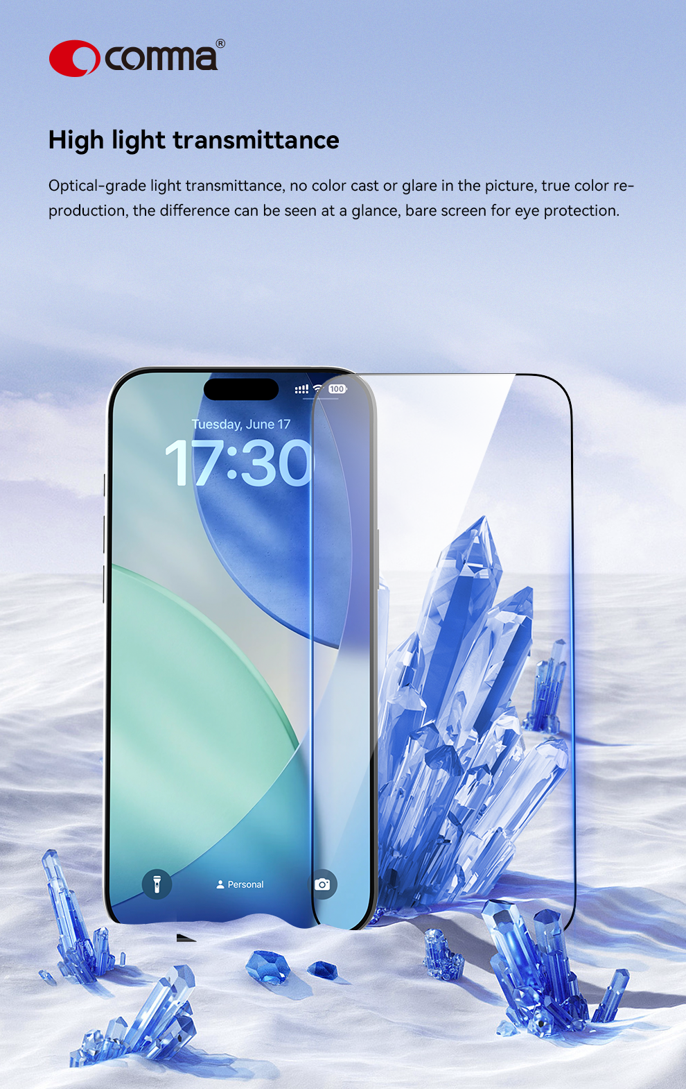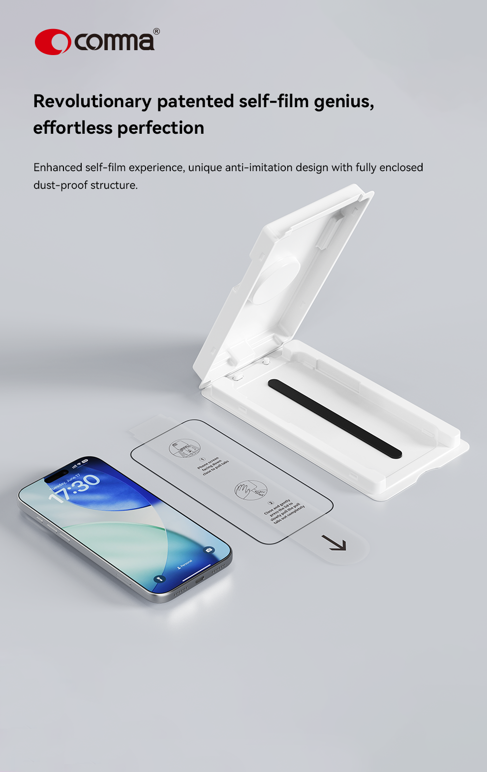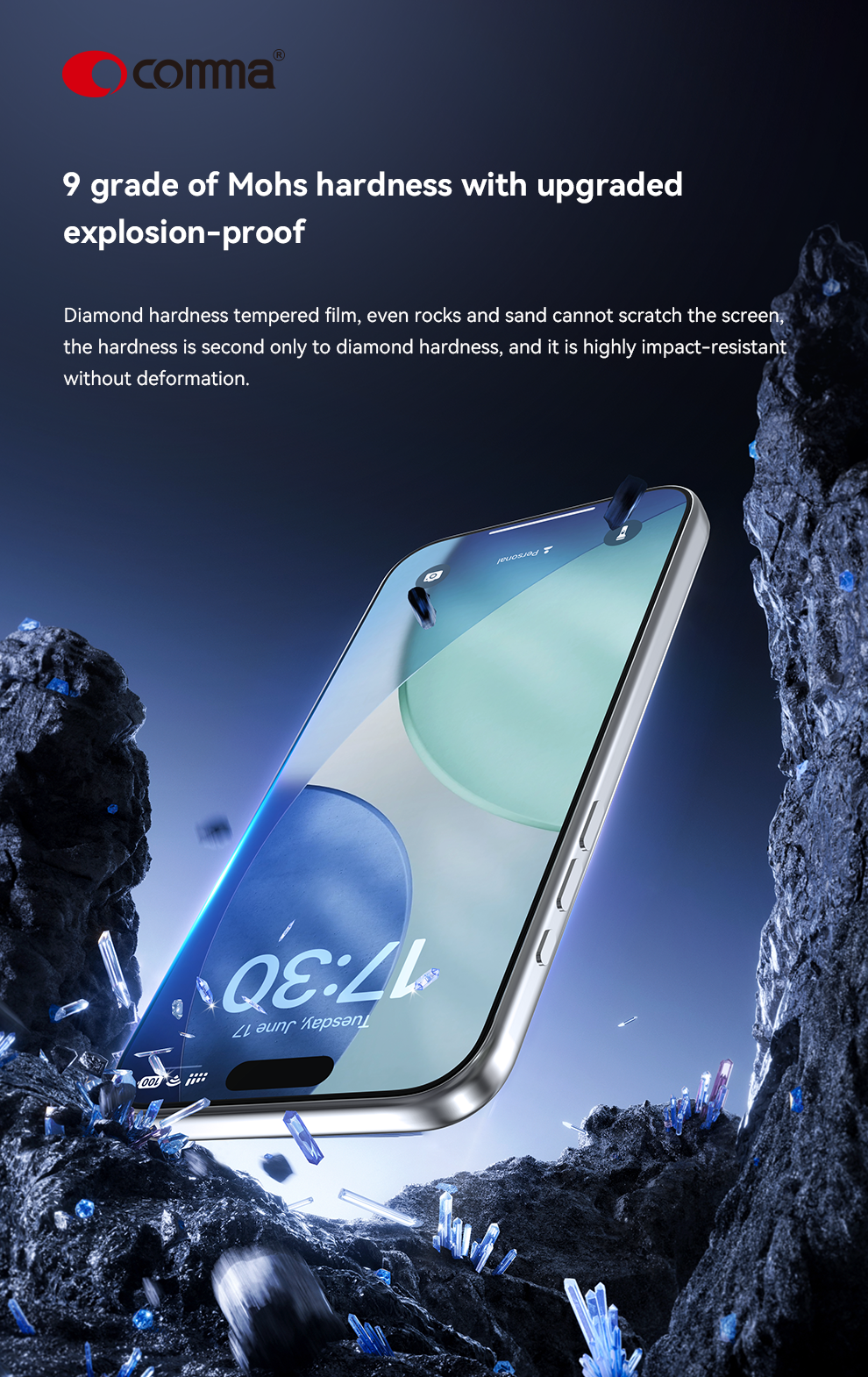 Comma Dun Series Crystal Diamond Hardness Tempered Glass(With Assist Tool) – iPhone 17 Pro Max – Black