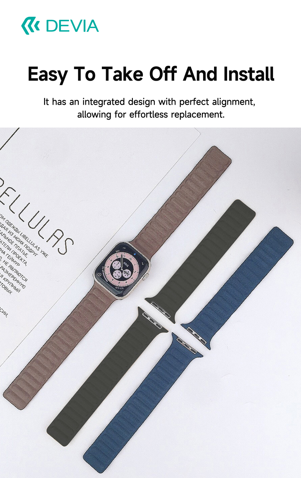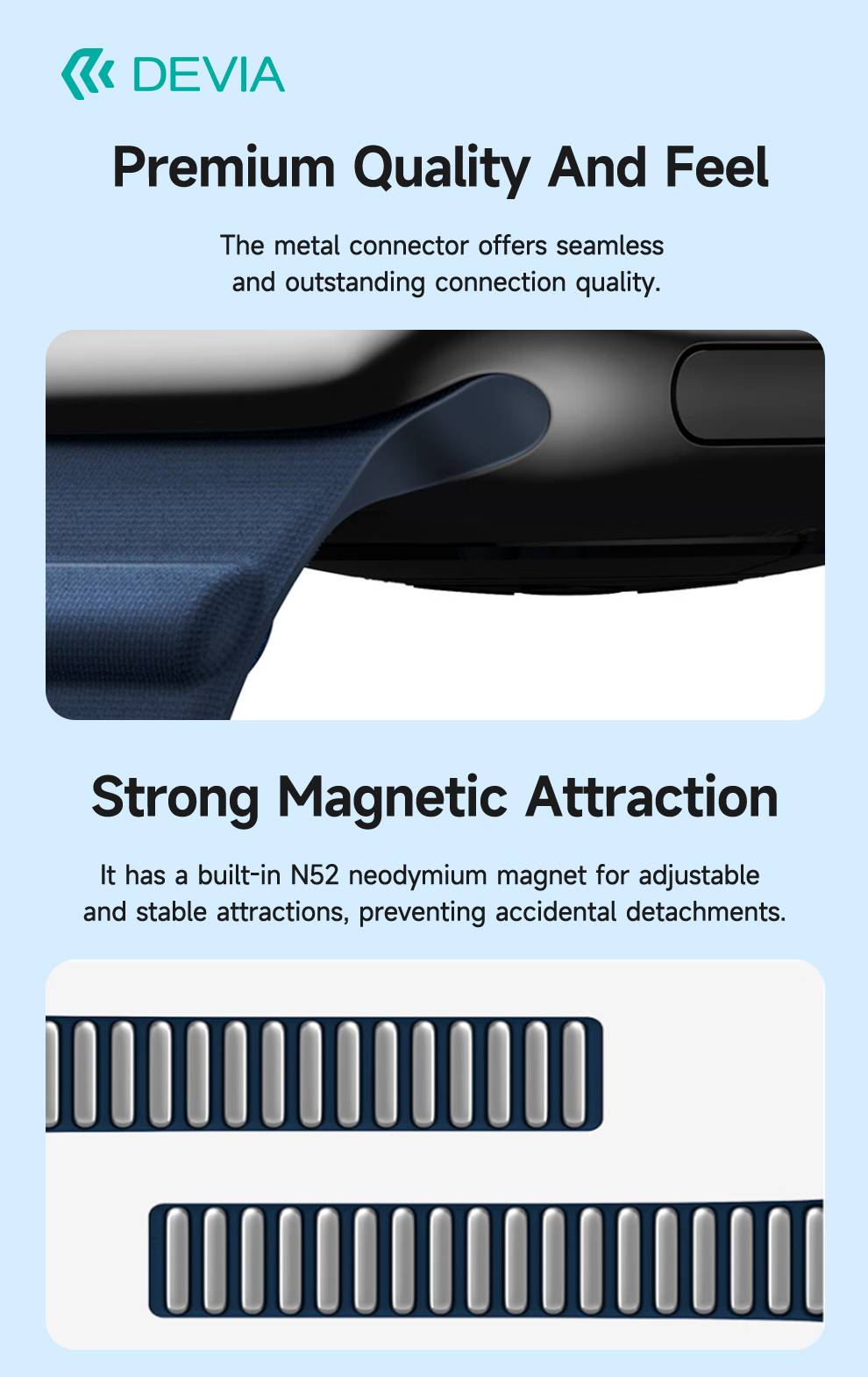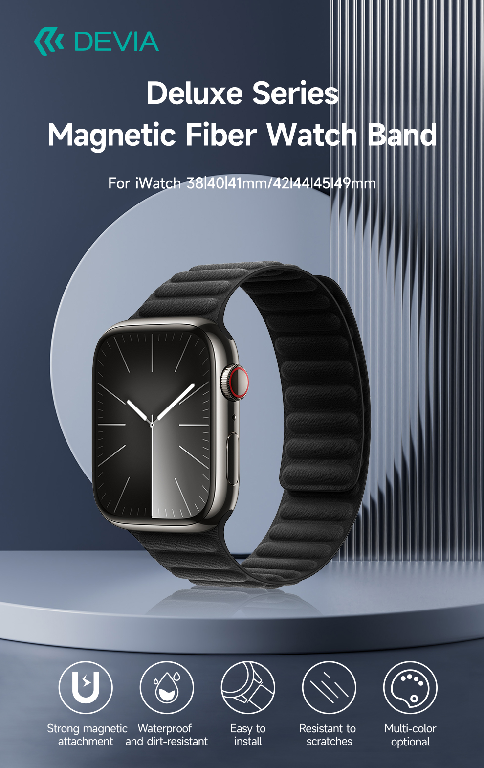Whether you’re heading to the office, gym, or a night out, the DEVIA Magnetic Fiber Watch Band delivers functionality with a touch of elegance, making it the perfect addition to your Apple Watch collection.