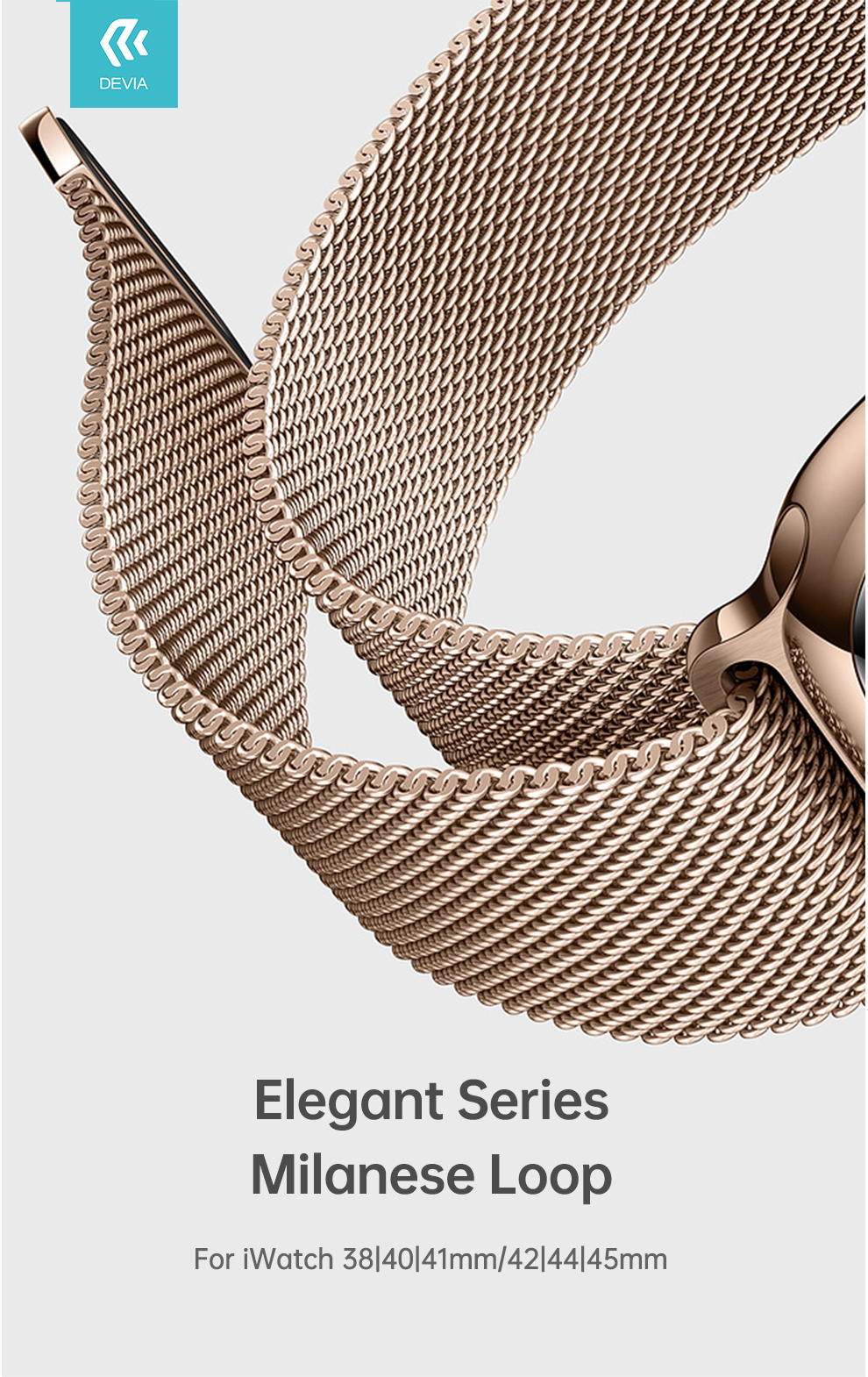 Elevate your Apple Watch with the DEVIA Elegant Series Milanese Loop in Gold, a luxurious blend of timeless elegance and modern functionality. Crafted from high-quality stainless steel, this finely woven Milanese mesh band is lightweight, breathable, and comfortable for extended wear. The adjustable magnetic clasp ensures a secure and personalized fit, while the stunning gold finish adds a touch of sophistication to any outfit. Ideal for formal occasions, casual settings, or daily use, this watch band is the perfect accessory for any Apple Watch enthusiast.