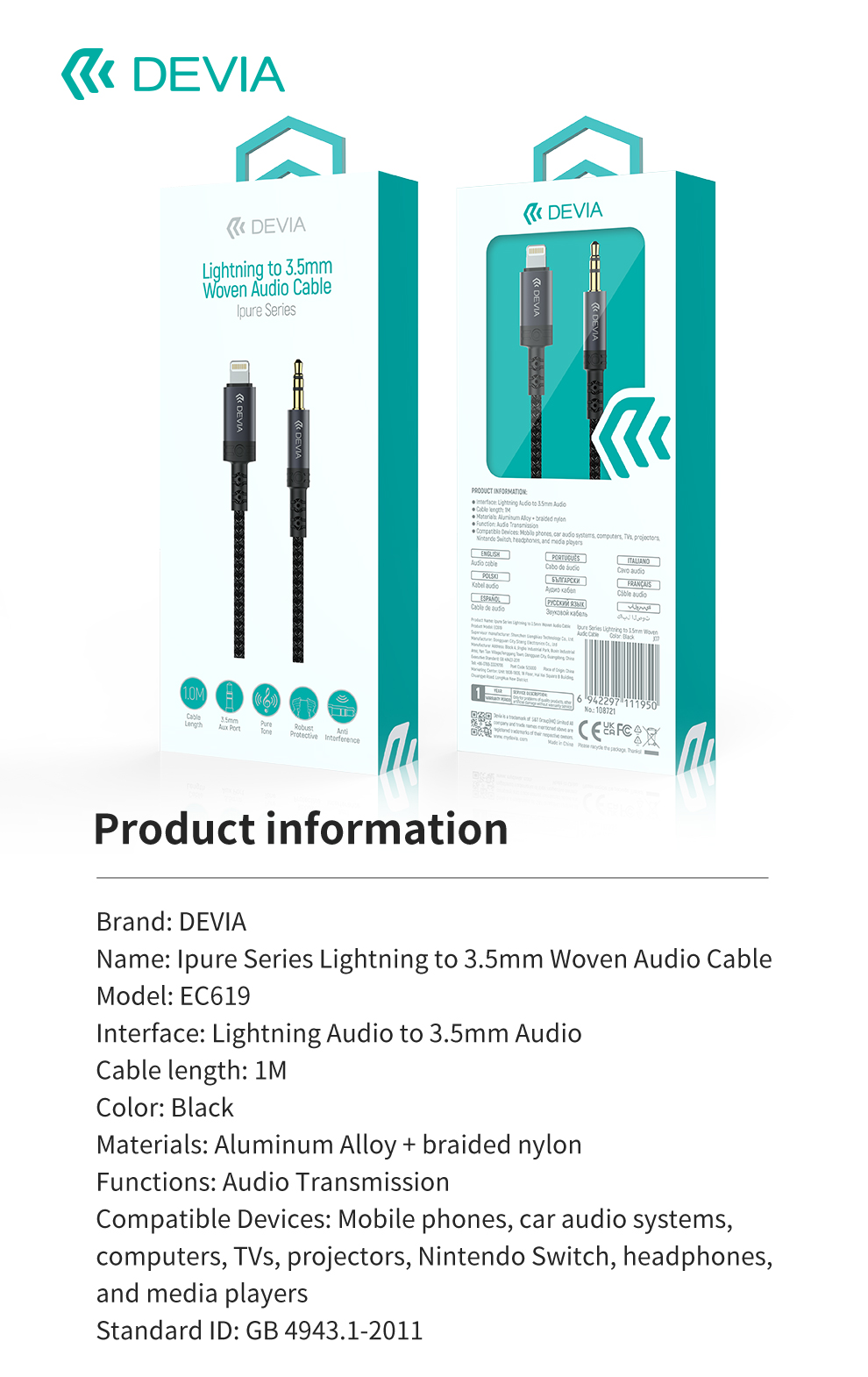 DEVIA Ipure Series Lightning to 3.5mm Woven Audio Cable