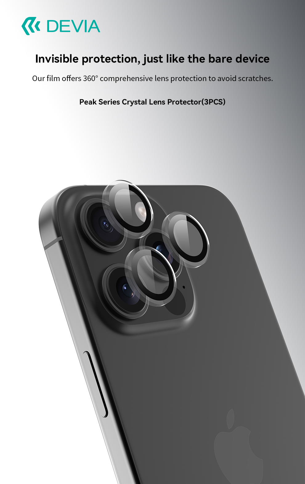 Devia Peak Series Crystal Lens Protector – iPhone 16 Pro/16 Pro Max – Clear