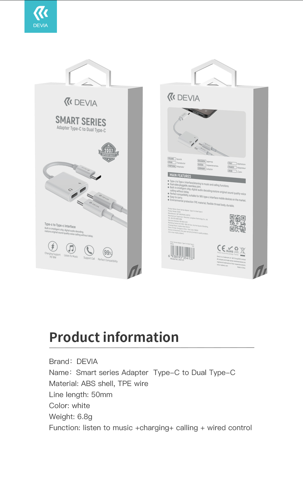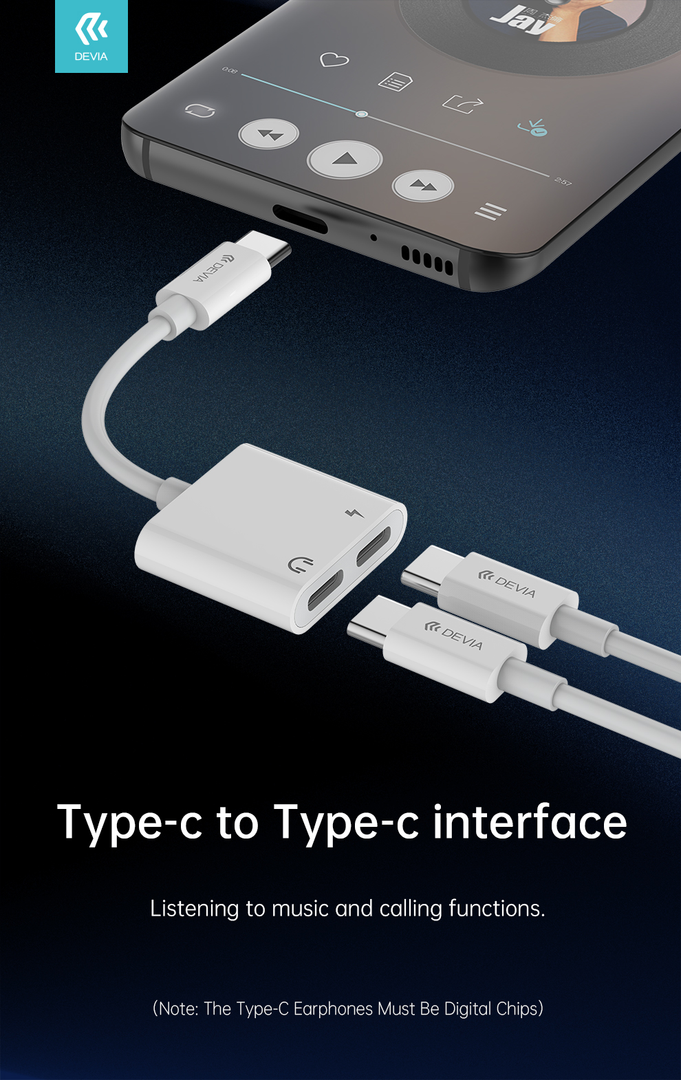 DEVIA Smart Series Adapter Type-C To Dual Type-C