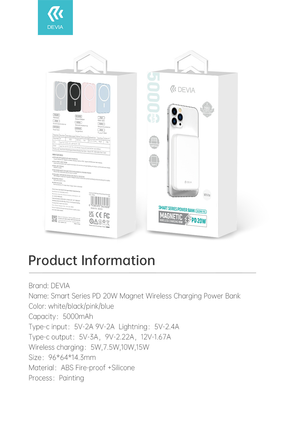 DEVIA Smart Series PD 20W Magnet Wireless Charging Power Bank V2