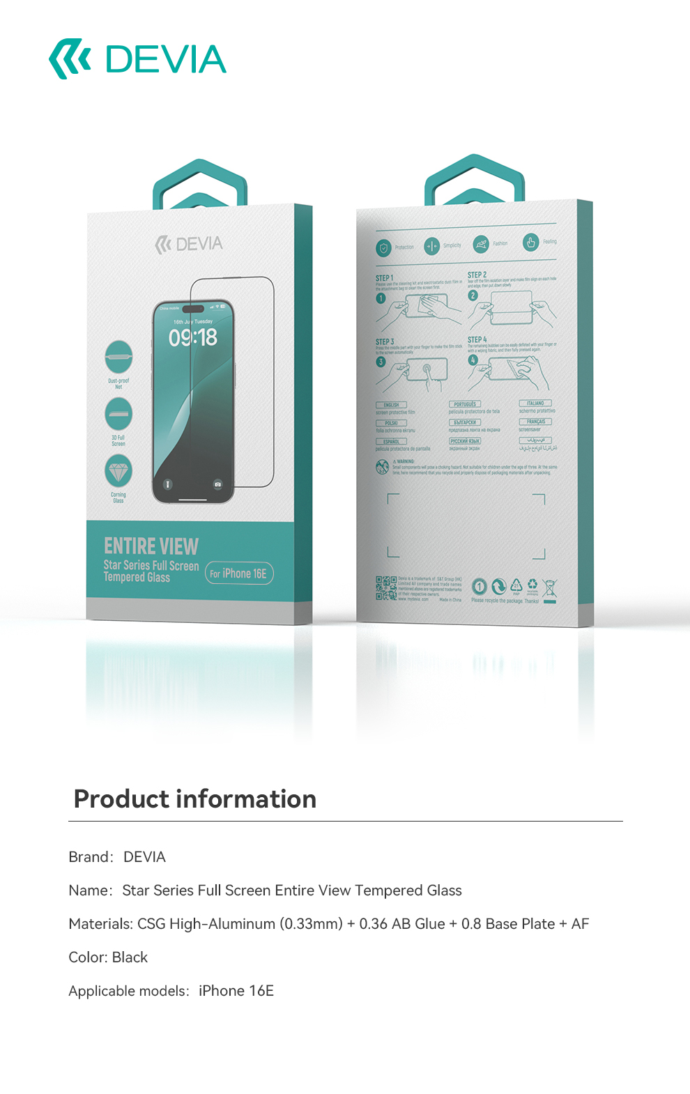 DEVIA Star Series Full Screen Entire View Tempered Glass – iPhone 16E