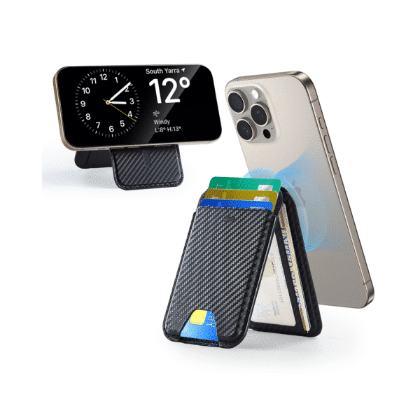 ESR HaloLock Vegan Leather Wallet Stand, Black Carbon Fiber