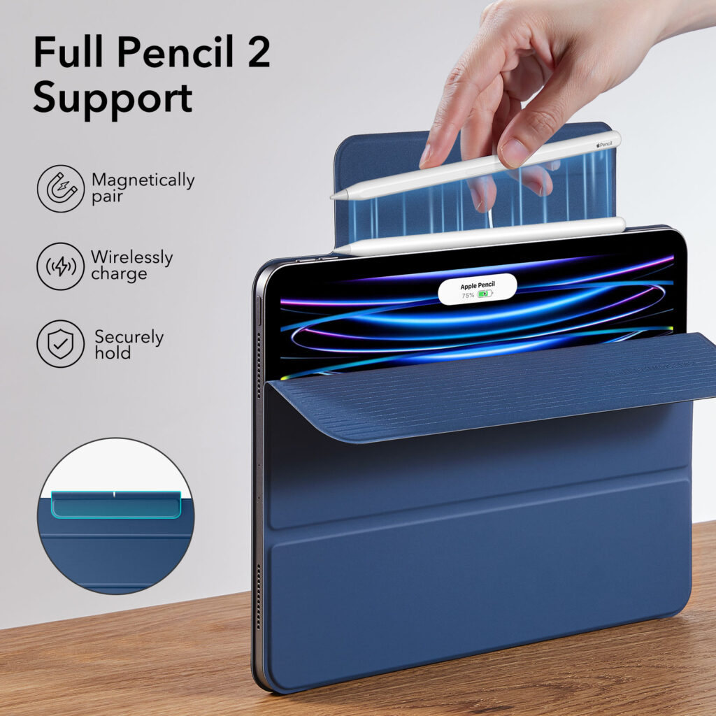 ESR iPad Pro 11 Rebound Slim and Lightweight Magnetic Trifold Case — Navy Blue
