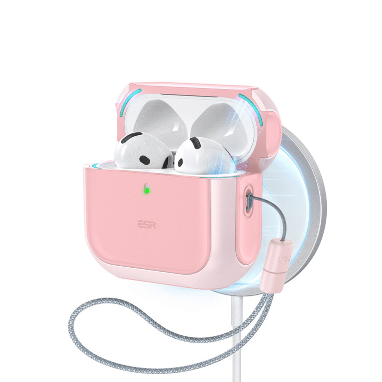 The ESR Pulse Magnetic Lock Case (HaloLock) in White offers MagSafe compatibility, secure magnetic lock design, and durable protection for AirPods Pro.