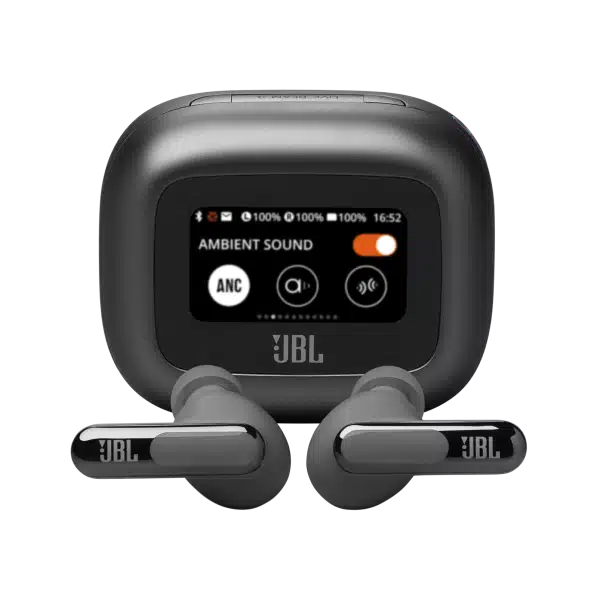 Get customized sound without ever looking at your phone. Use the controls on the Smart Charging Case™ of the JBL Live Beam 3 true wireless noise-cancelling earbuds with Hi-Res Audio to customize all their features without opening the JBL app on your device. Adjust volume and EQ, control your music, take phone calls, see messages—you can even customize the screensaver with your favorite photos. And that’s before you even get to enjoy the monumental JBL Signature Sound of the Live Beam 3 earbuds themselves. Best-in-class True Adaptive Noise Cancelling tunes out distractions. JBL Spatial Sound makes movies and music truly immersive. And if you have to take a call, 6 mics ensure perfect sound quality even in the noisiest surroundings. All this plus a 48-hour charge: 12 hours in the buds* and another 36 in the case—and they can charge wirelessly. The charging case features a loop to attach a lanyard for even more convenience. Great sound has never been simpler. (*with ANC off)