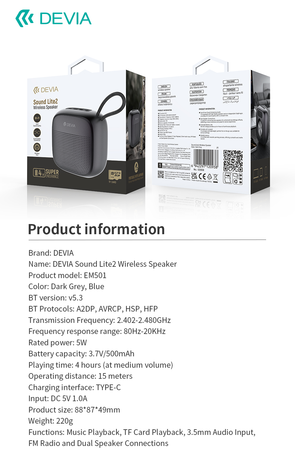 Devia Sound Lite2 Wireless Speaker EM501 – Black