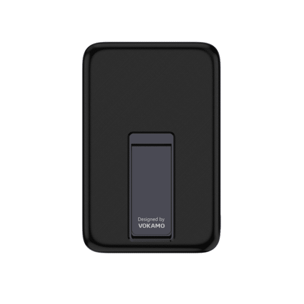 The VOKAMO MagStand Mobank Power Bank with Magnetic Holder – Black offers fast charging, a magnetic attachment, and an integrated stand in a sleek and portable design.
